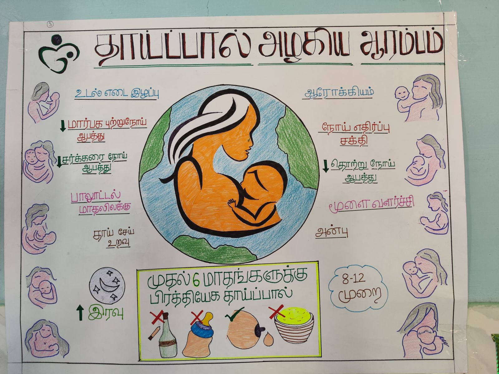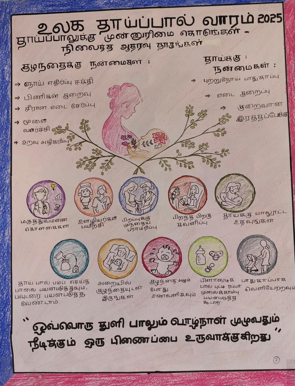 As part of World Breastfeeding Week 2025, Under the guidance of Executive Director, the Department of Community and Family Medicine organised a poster exhibition at PHC Devipattinam MBBS students and staff members actively participated MBBS students displayed the posters and explained to the ANC mothers the importance of breastfeeding Following which, awareness sessions for ANC mothers were organised at PHC Devipattinam Around 50 ANC mothers participated and benefited from the session.