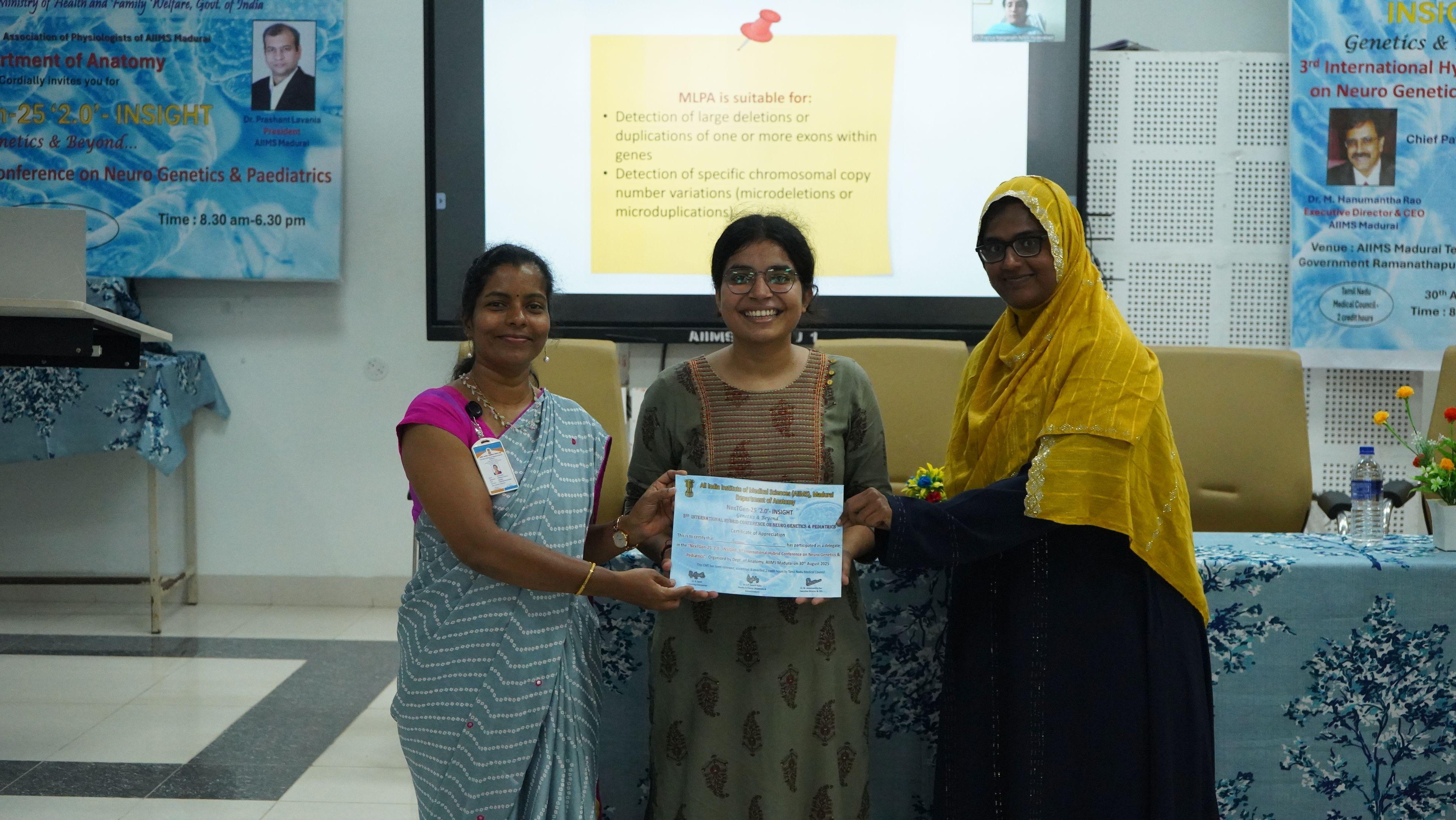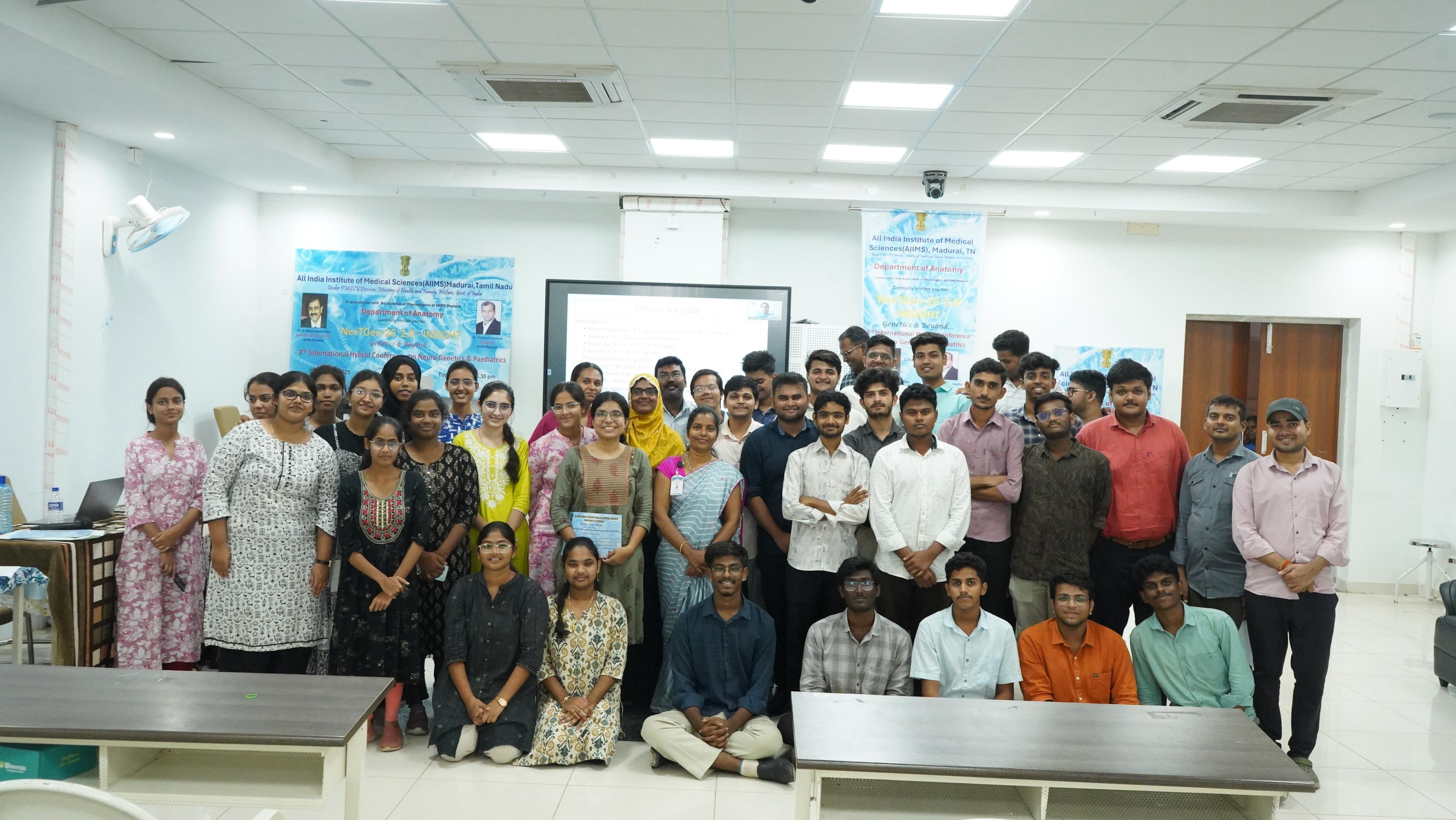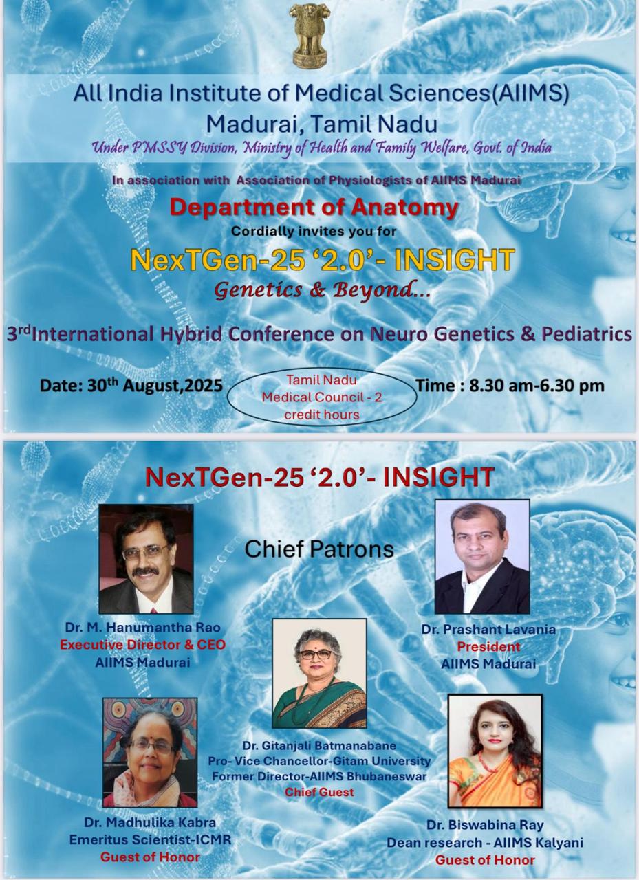 Under Executive Director Dr Hanumantha Rao & President Dr Prasant Lavania, Anatomy Dept hosted NexTGen-25‘2.0’INSIGHT-3rd International Hybrid Conference on NeuroGenetics & Pediatrics in the presence of Dr Ganesh Babu (FIC-Acad) & Organising Chairperson Dr Sarah with 640 delegates One International & 10 National Guest Speakers from various COE under NIDAN Kendra with carefully chosen topics, engaging Panel discussion, Novel Poster presentation & active participation of 640 delegates of all specialty both Online & Offline with good feedback.