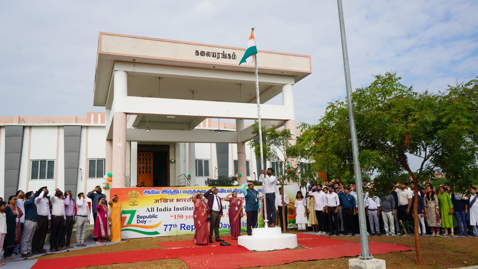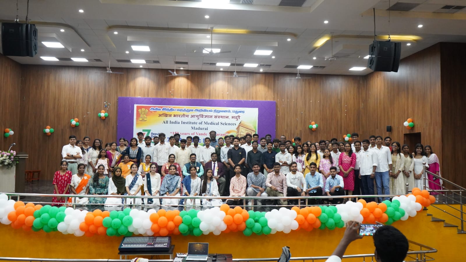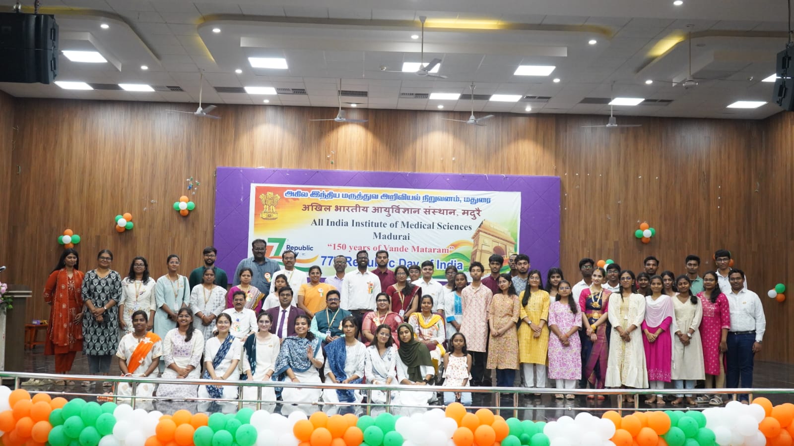 Under the guidance of President Prof Dr Prashant Lavania and Executive Director Prof Dr Hanumantha Rao, AIIMS Madurai celebrated 77th Republic Day Faculties, Students and Staff participated in Flag Unfurling Cultural Events were held in which Students actively participated.