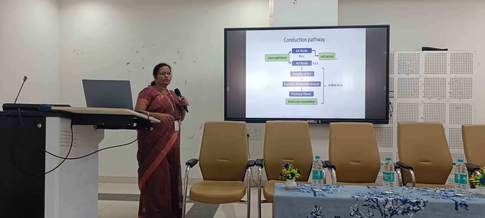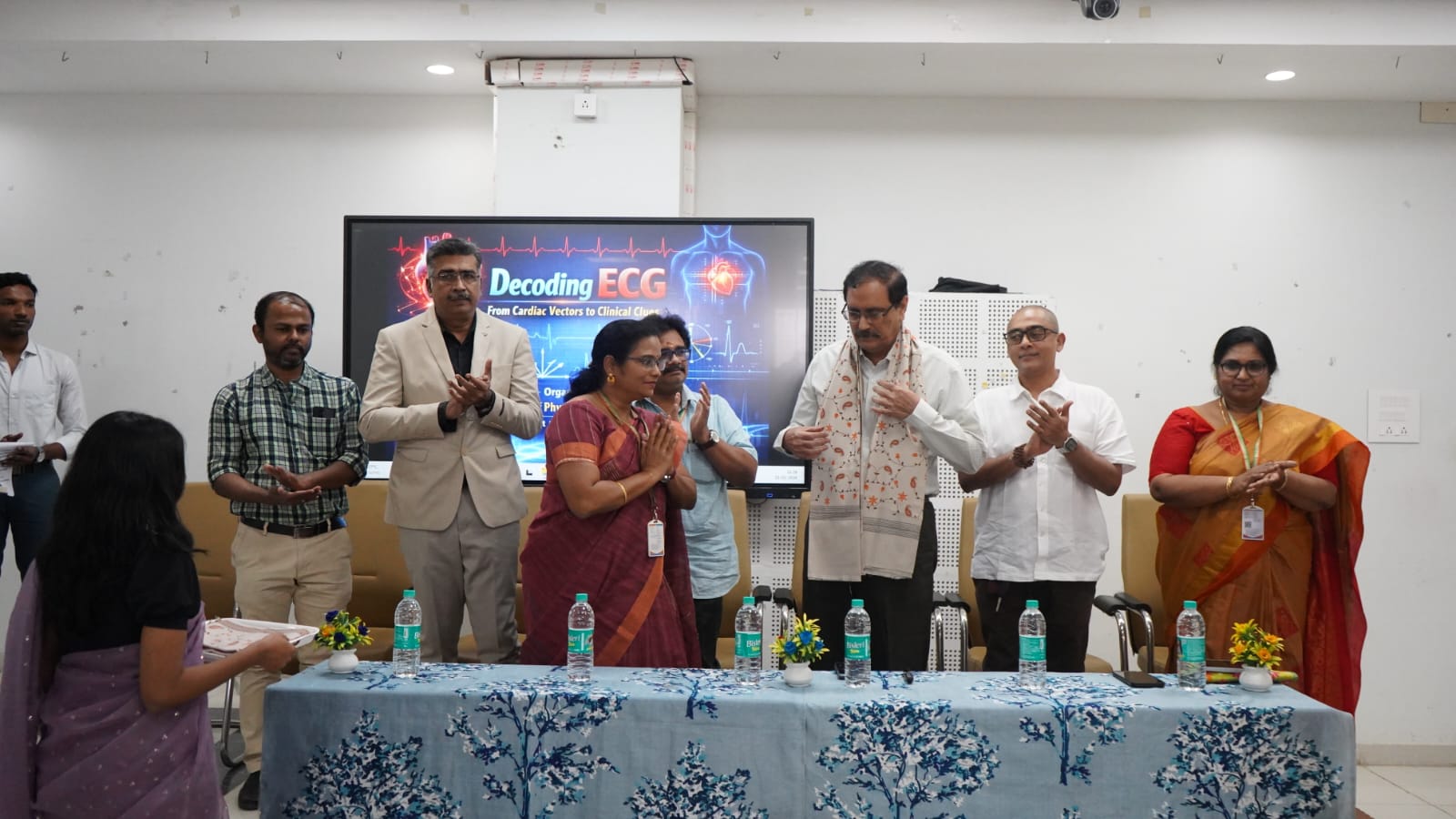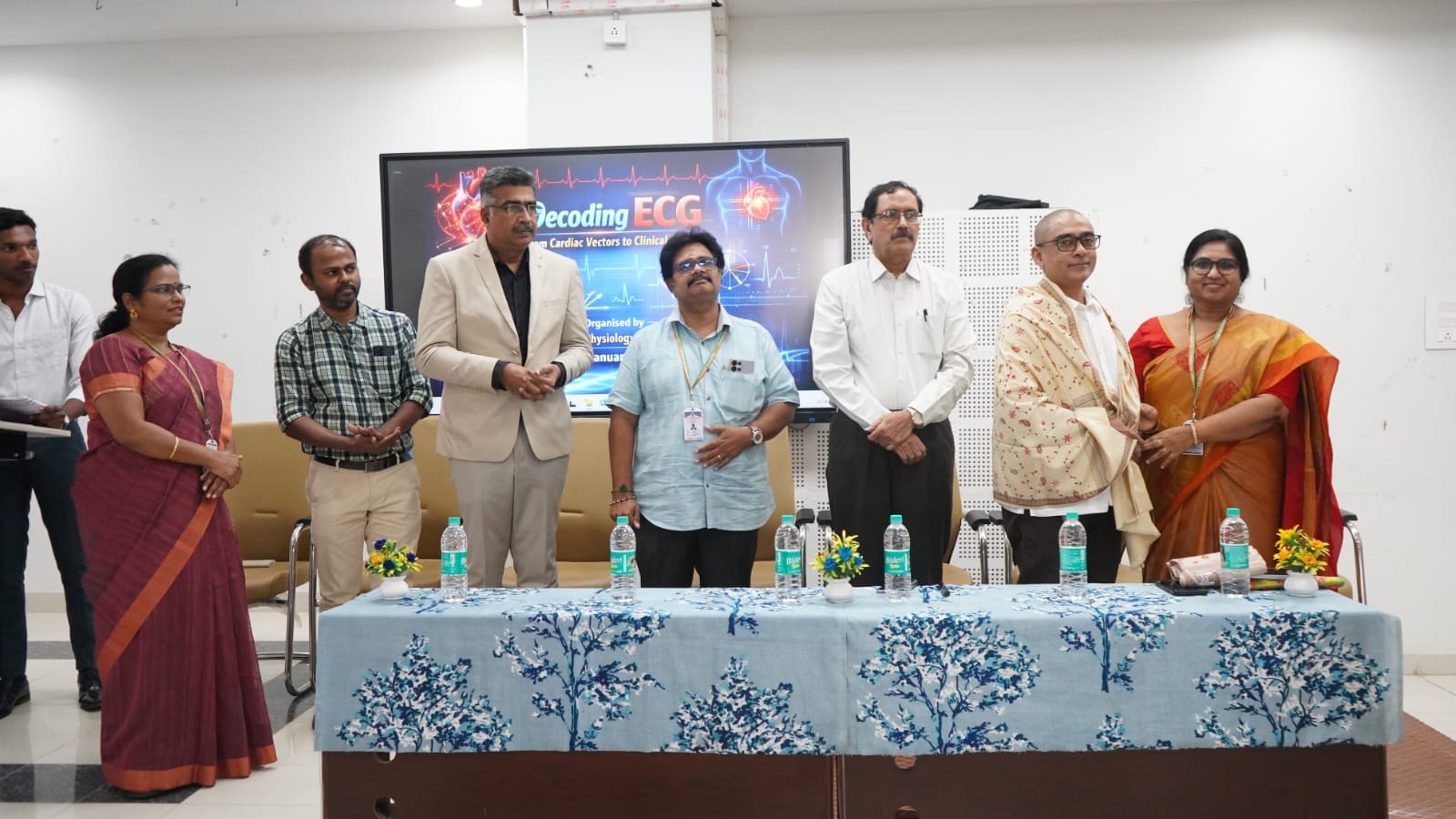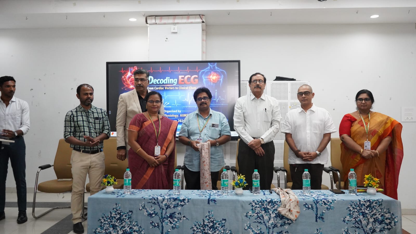 Under the guidance of Honorable President of AIIMS, Madurai Prof Dr Prashant Lavania and Honourable Executive Director and CEO of AIIMS, Madurai Prof Dr Hanumantha Rao, Department of Physiology, AIIMS, Madurai has successfully conducted a CME on ECG titled “Decoding ECG: from Cardiac vectors to Clinical Clues” on 21st January 2026 at Sarvepalli Radhakrishnan Hall, Govt Medical College, Ramanathapuram The program started with a welcome address and opening remarks by Dr Anandhalakshmi, Professor and Head, Department of Physiology, AIIMS, Madurai Executive Director and CEO Prof Dr Hanumantha Rao, Dean-Incharge (Academics and Administration) Dr Ganesh babu and Dean-Incharge Dr Mangayarkarasi graced the occasion Dr Anandhalakshmi, Professor and Head of Physiology, AIIMS, Madurai, Dr P S L Saravanan, Director and Professor, Institute of Physiology, Madurai Medical College, Dr P Shanmuga Sundaram, Director, Department of Cardiology and Cath Lab, VMCHRI, Madurai and Dr P V Balamurugan, Professor, Department of Medicine, Madurai Medical College were the resource persons and gave excellent talks on all the aspects of ECG recording and reading First year MBBS students of AIIMS, Madurai and faculties of AIIMS, Madurai participated and benefitted by the eminent lectures delivered The program concluded with vote of thanks by Dr Senthil Velou, Additional Professor of Physiology, AIIMS, Madurai