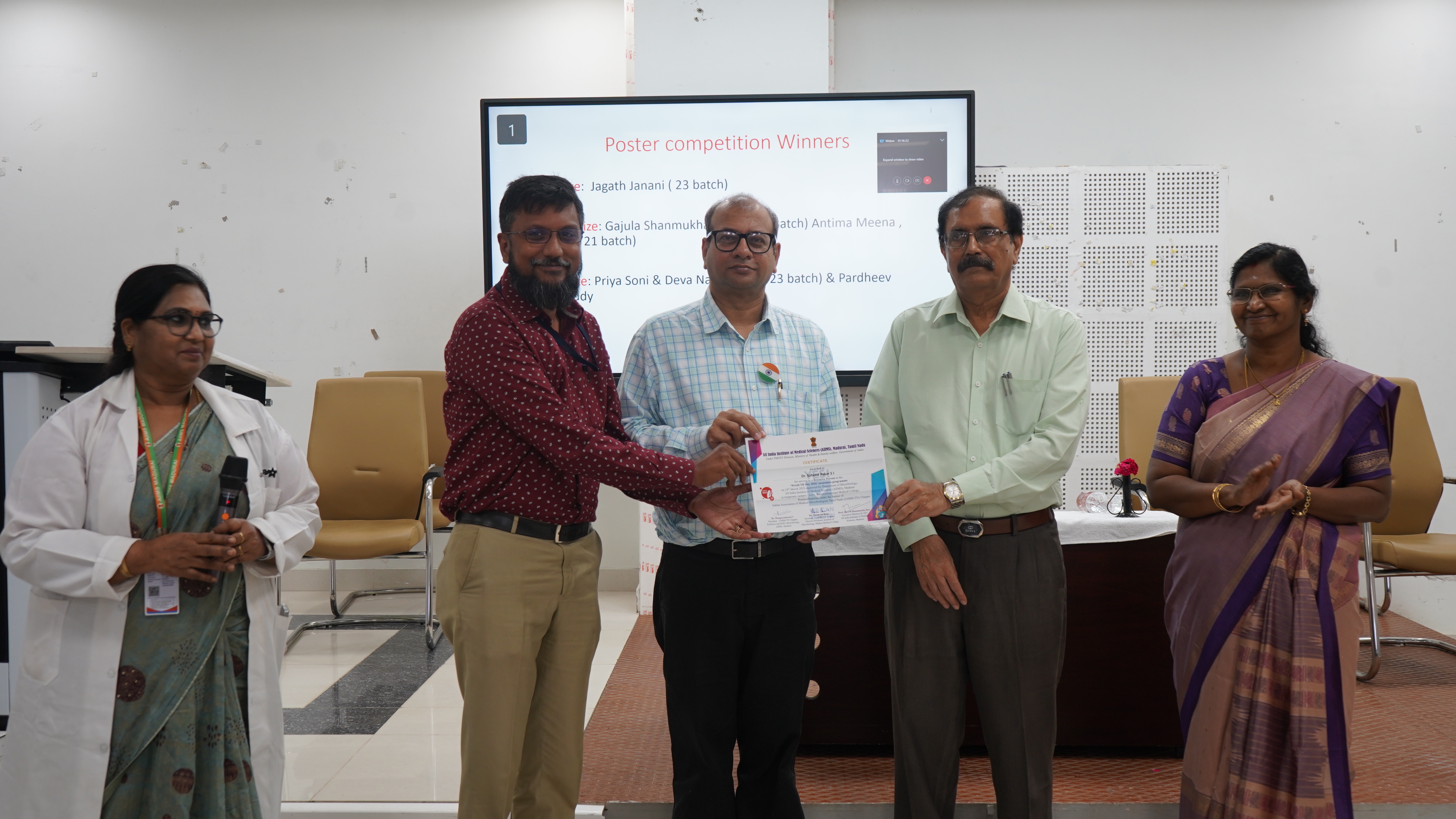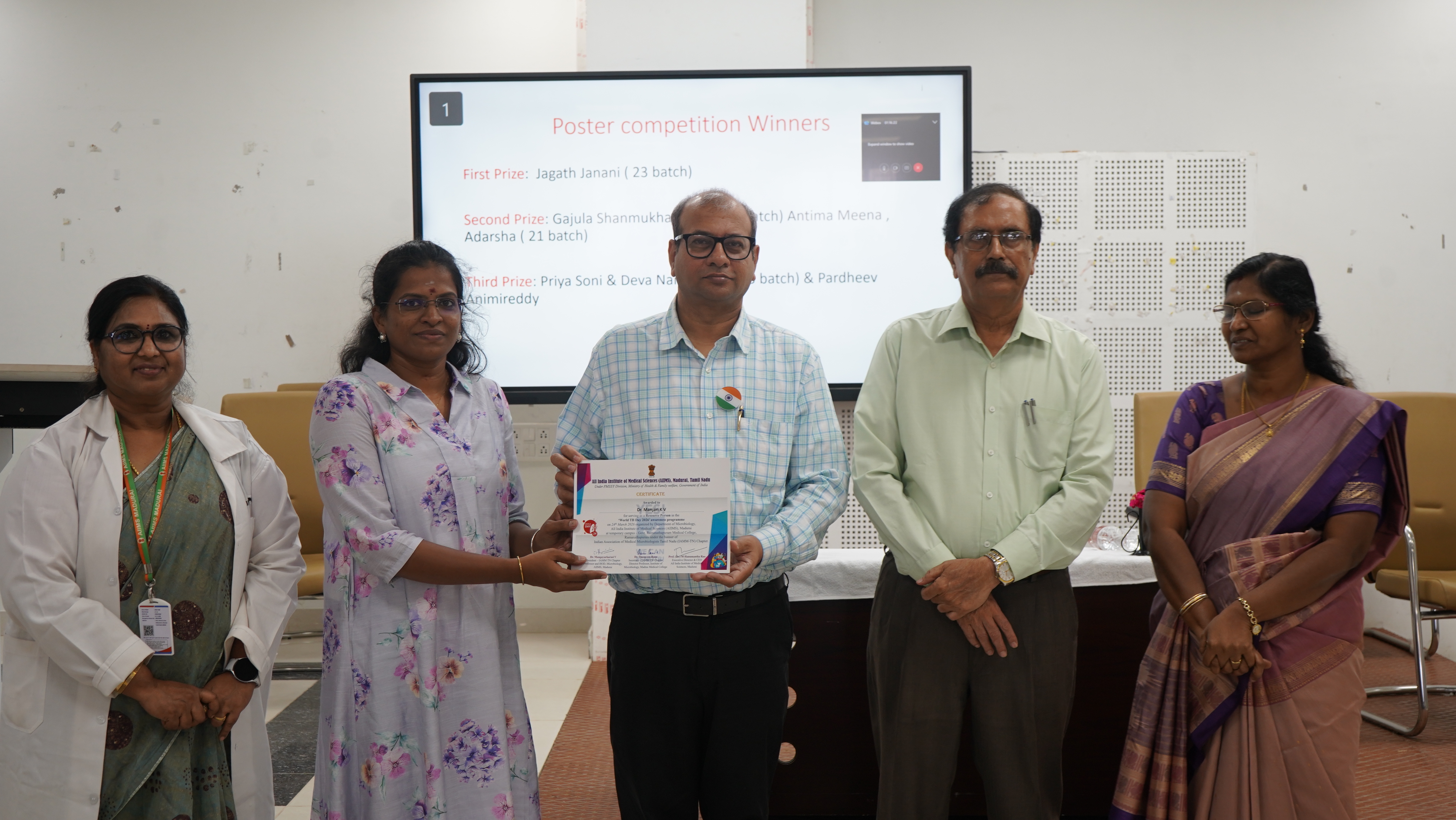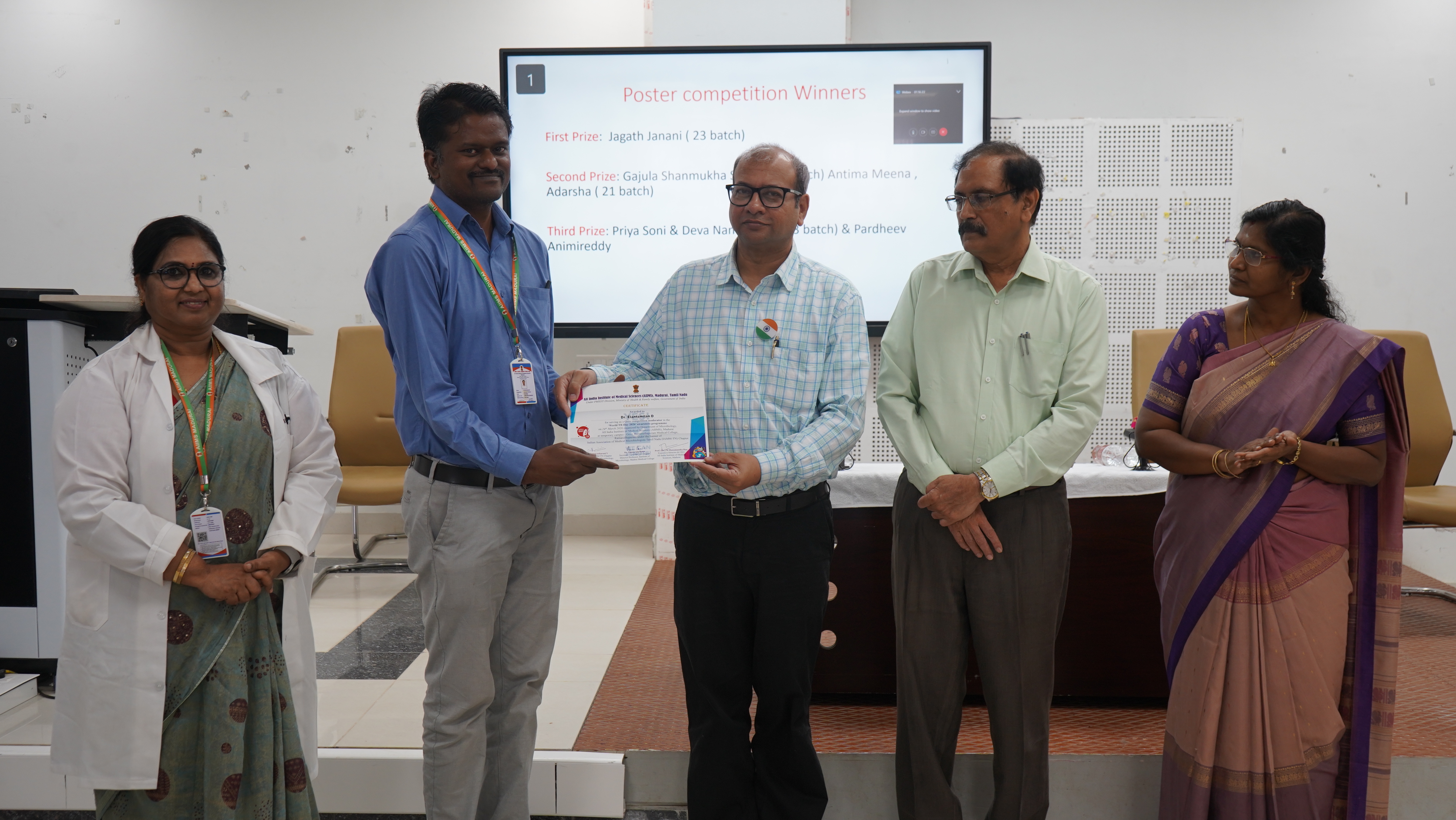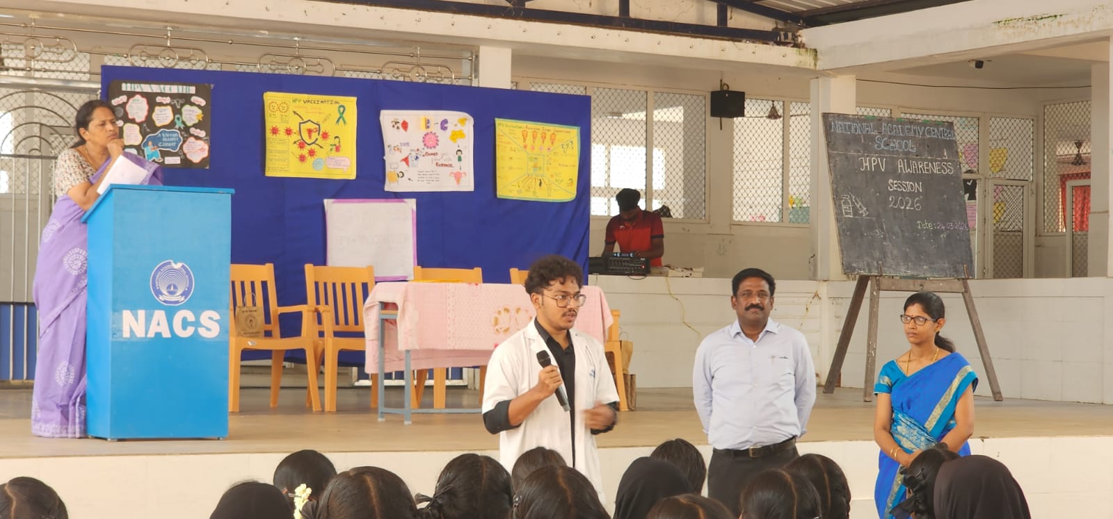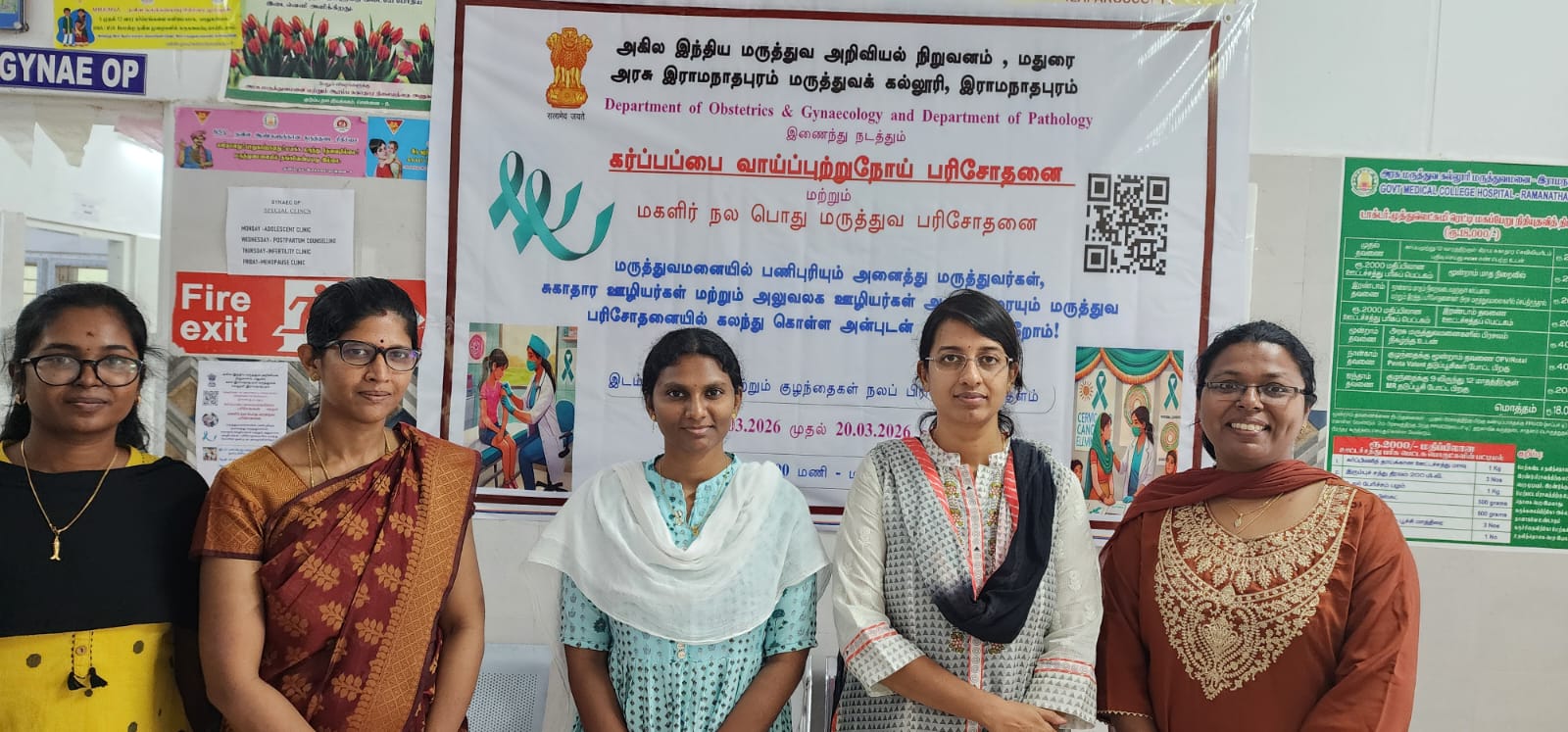Guided by our honourable Executive Director Prof Dr Hanumantha Rao, Department of Obstetrics and Gynaecology and Department of Pathology of AIIMS Madurai organized a cancer screening programme for faculty and staff from 16-3-2026 to 20-3-2026 in GRMC hospital Ramnad Awareness program on HPV vaccination in NACS ICSE and Matriculation school on 25-3-2026 In addition, MBBS students were awarded prizes for Poster competition