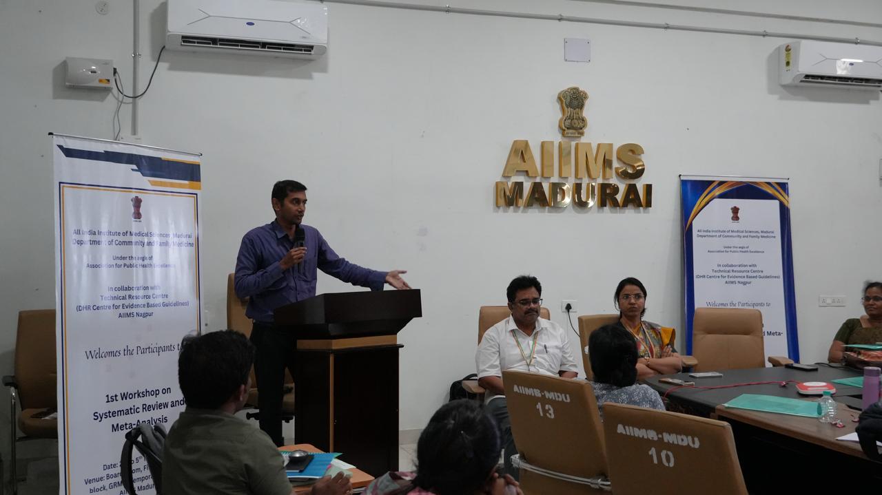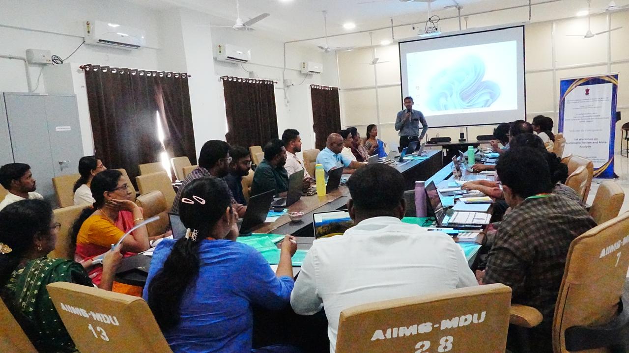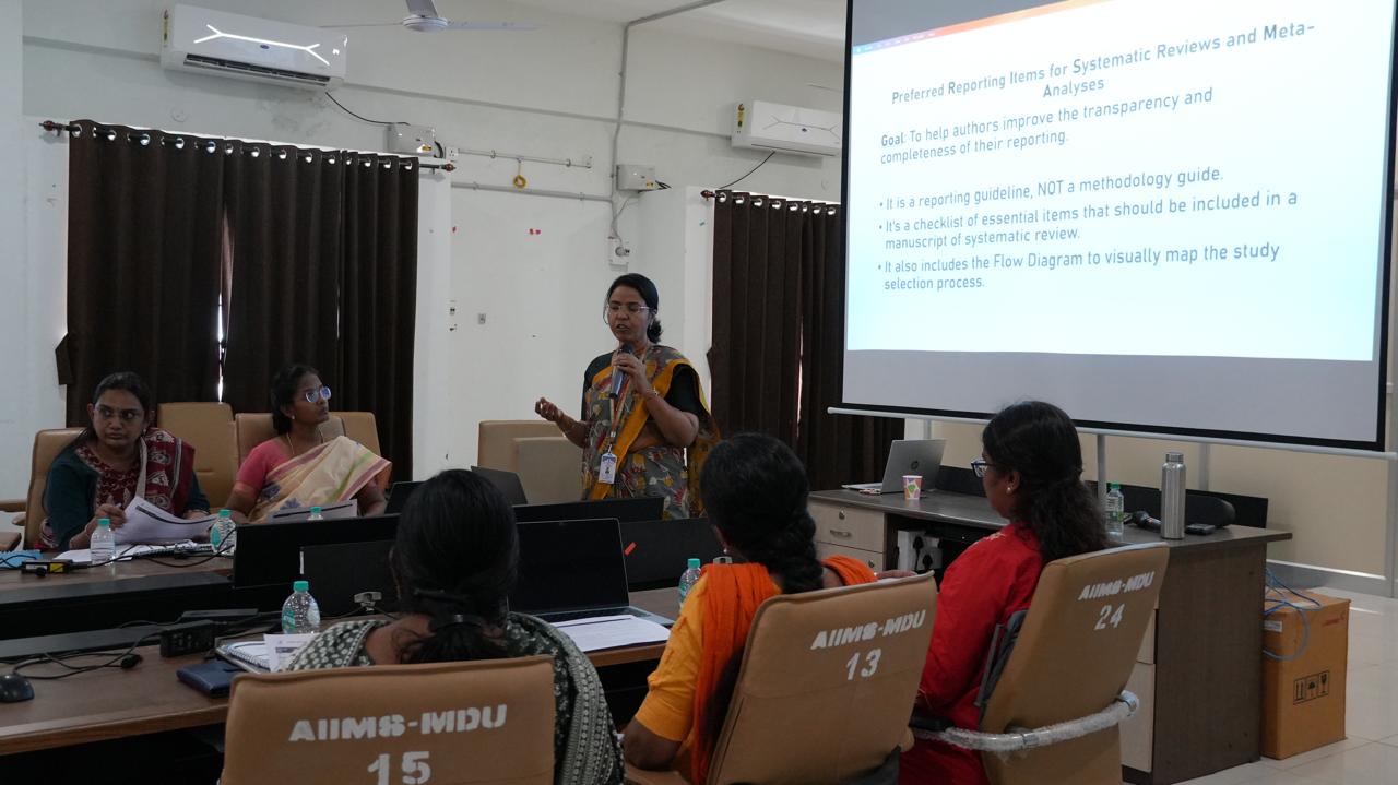 Under the guidance of honourable Executive Director Prof Dr M Hanumantha Rao, Dept of Community and Family Medicine organised the first Systematic Review and Meta-analysis workshop in collaboration with TRC of AIIMS Nagpur from 2nd March to 5th March 2026 The workshop witnessed the active participation of enthusiastic faculty members and senior residents from AIIMS Madurai They engaged in interactive discussions and hands-on learning throughout the sessions.