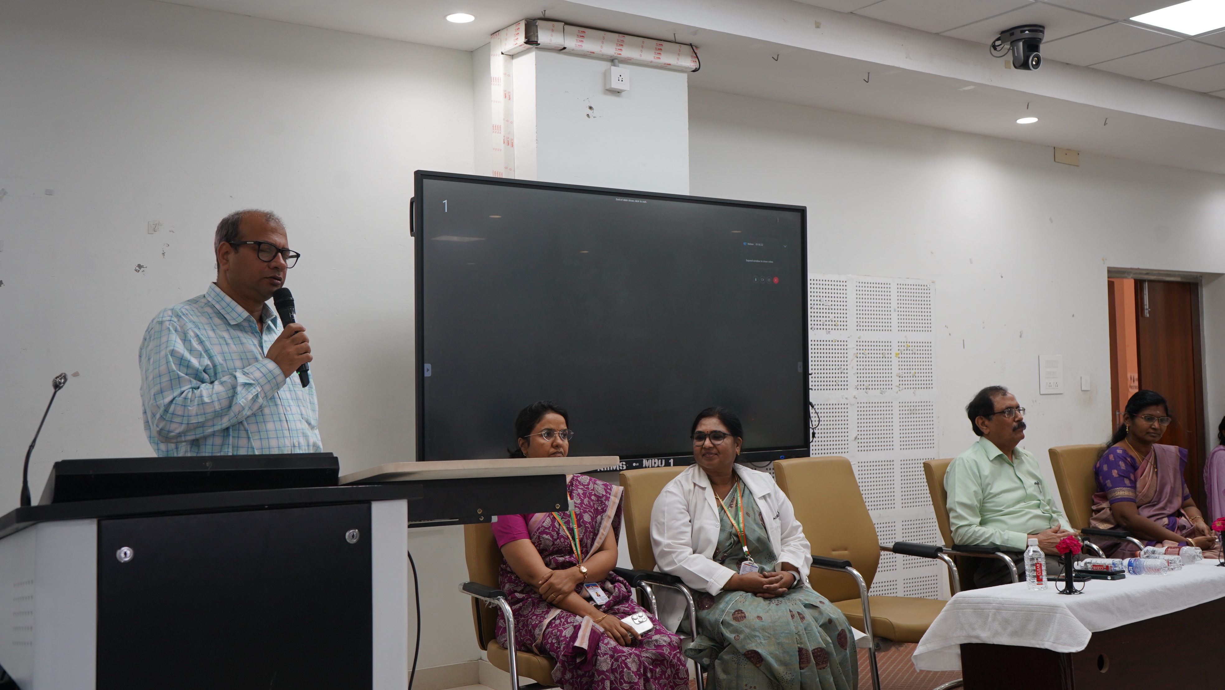 Under the guidance of the Honourable Executive Director, Prof Dr Hanumantha Rao, an awareness programme was organized on 30th March 2026 at the Syed Ammal Arts College, Ramanathapuram to observe World TB Day 2026 The programme was conducted by the District TB Unit, Ramanathapuram, in collaboration with the Department of Community and Family Medicine, AIIMS Madurai, under the theme “Yes! We Can End TB: Led by Countries, Powered by People” The event was graced by the presence of distinguished faculty members, Dr Venkateswaran, Head of the Department of Pulmonary Medicine, Government Ramanathapuram Medical College; and Dr Praveena Daya A, Assistant Professor, Department of Community and Family Medicine, AIIMS Madurai, along with the Senior Treatment Supervisor (STS) staffs from the District TB Unit, Ramanathapuram Dr Venkateswaran elaborated on the risk factors, symptoms, diagnosis, management, and counselling aspects of tuberculosis Dr Praveena Daya A highlighted the vital role of community members in TB elimination, emphasizing the importance of reducing stigma and discrimination, as well as early identification of TB symptoms to prevent its spread The programme concluded with a pledge taken by all students and staffs in line with the World TB Day theme The vote of thanks was delivered by the Principal of the Syed Ammal Arts College, Ramanathapuram, marking the successful completion of the event